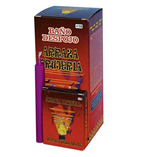 Contiene vela de ritual, jabón de aseo y fluido perfumado con esencias Arrasa Brujería.