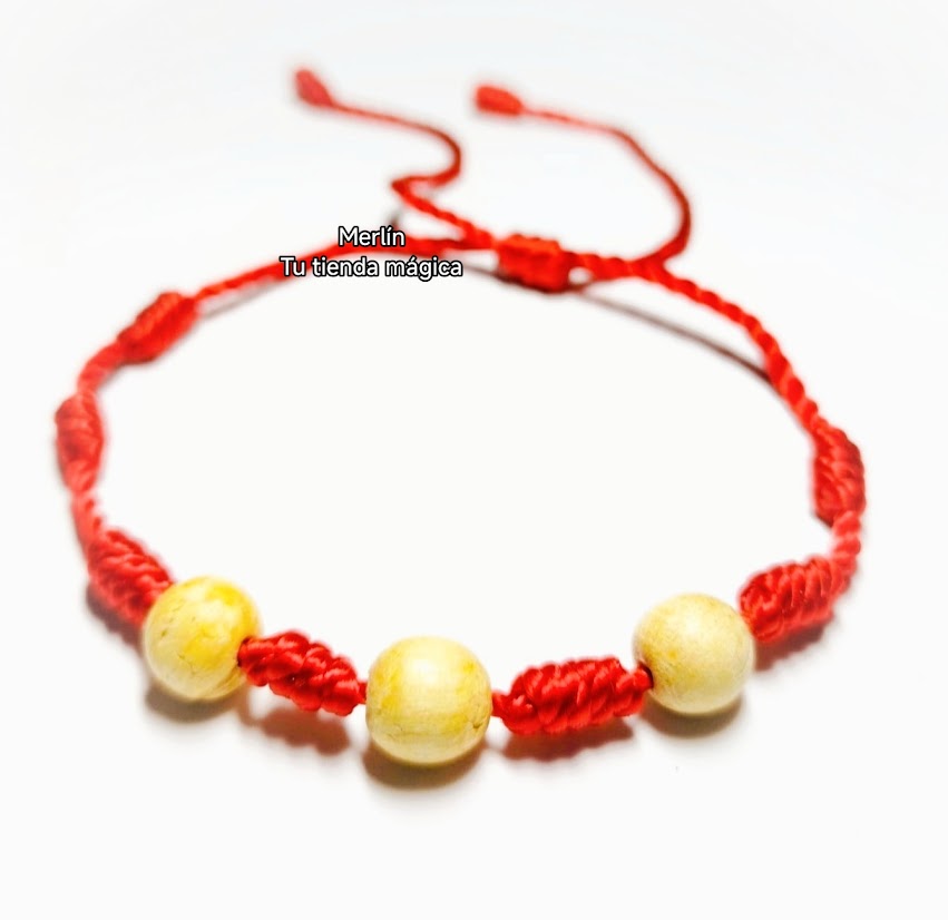 Pulsera de 7 Nudos roja con 3 cuentas de Palo Santo sagrado para proteger del mal de ojo y favorecer la buena suerte.