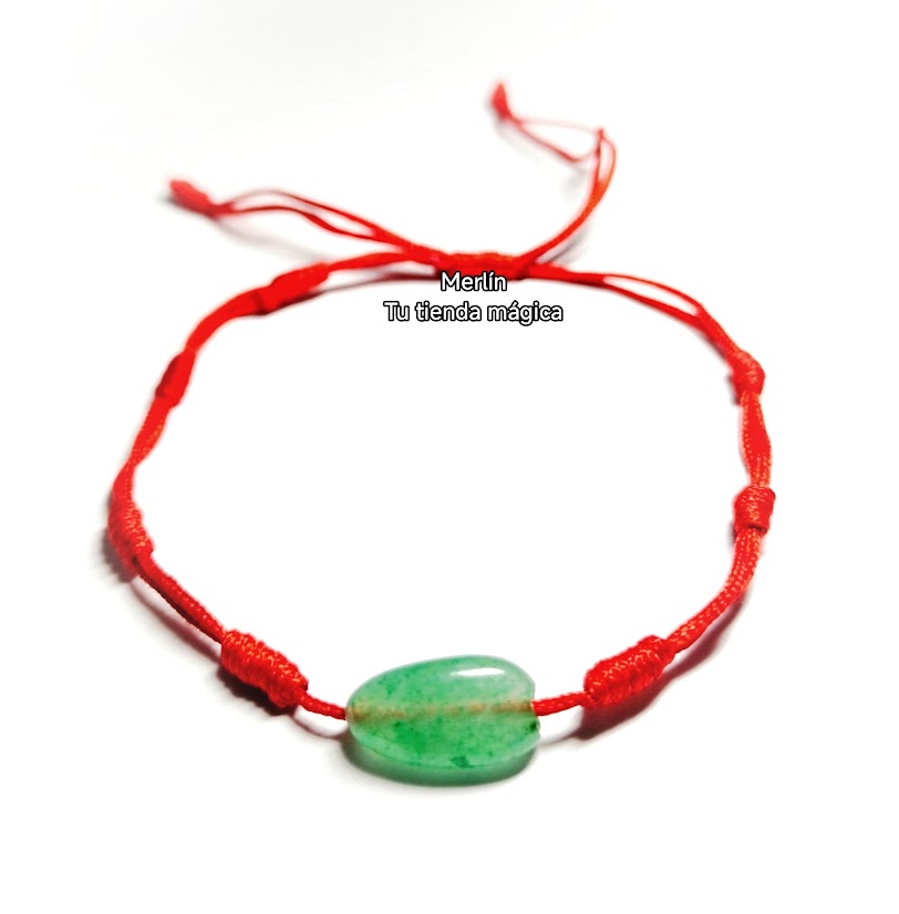 Material: Cordón rojo con lazo corredizo y 1 cuenta de mineral de Jade verde.