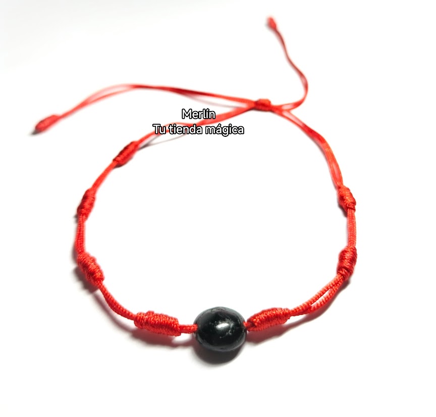 Material: Cordón rojo con lazo corredizo y 1 cuenta de mineral de Turmalina negra.