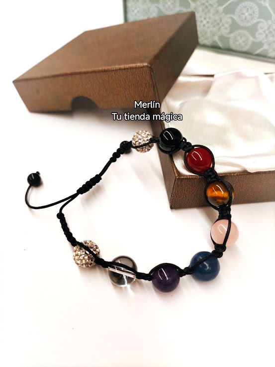 Pulsera de bolas de los 7 Chakras y Brillantes – Cordón Ajustable Entrelazado