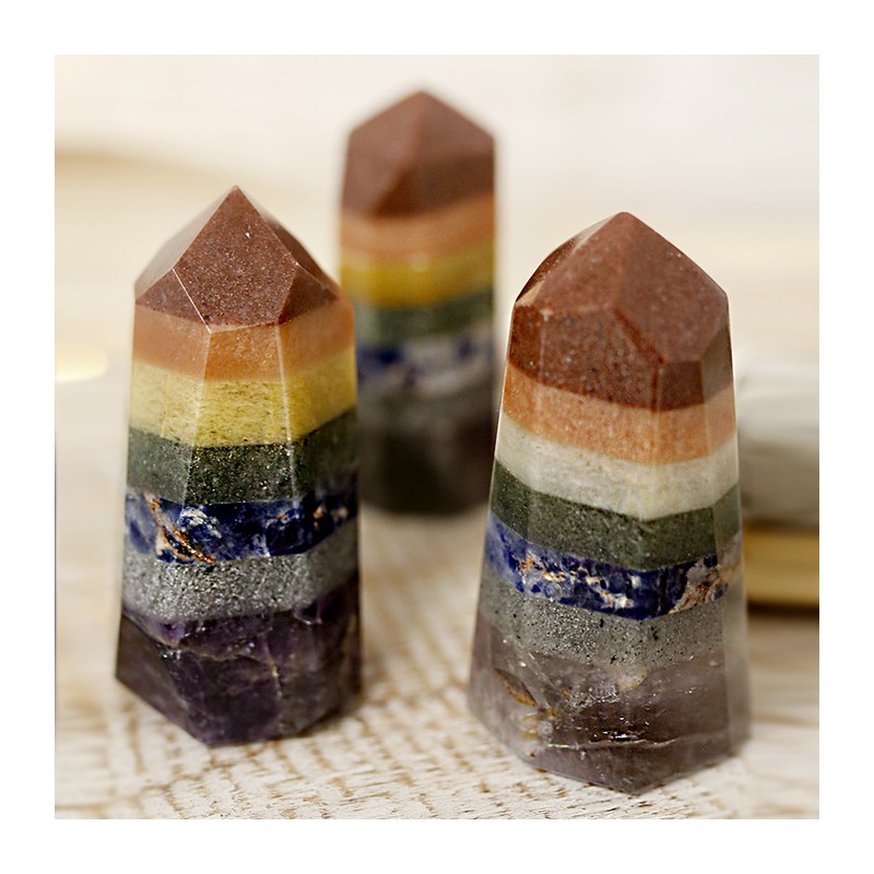 Estas puntas de gema de los 7 chakras están cuidadosamente talladas a mano, lo que garantiza que cada pieza sea única en forma, tamaño e intensidad de color.